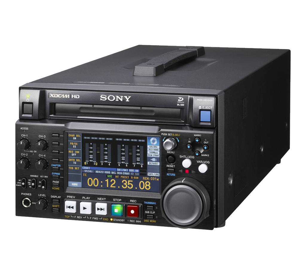 The Sony PDW-HD1500 is a half rack XDCAM HD recorder for Sony's line of optical disc-based cameras, including the PDW-700. Built upon blue laser technology, the XDCAM HD line of products takes advantage of non-linear workflow, while keeping the same tape-based archiving infrastructure that professionals are accustomed to.